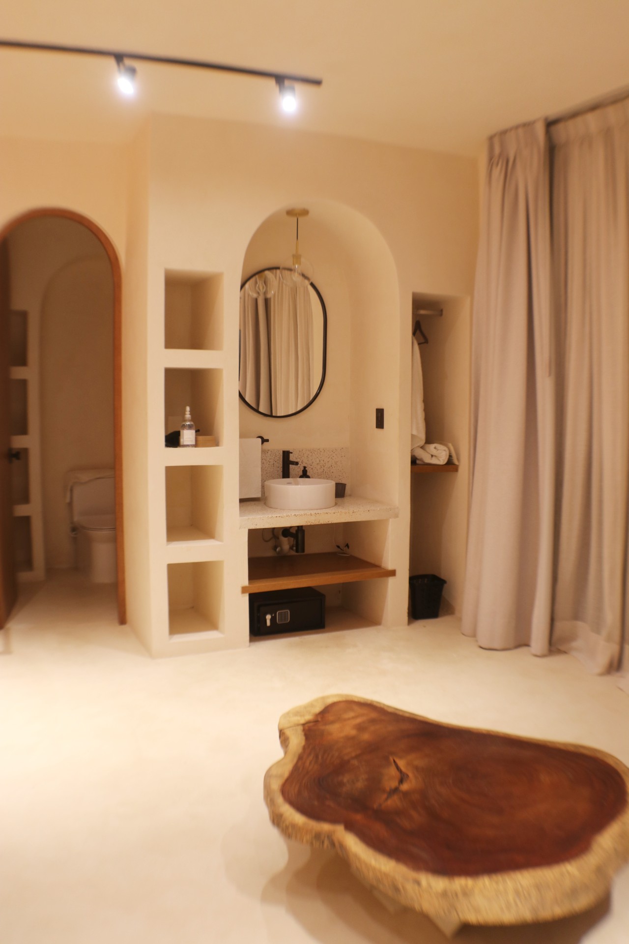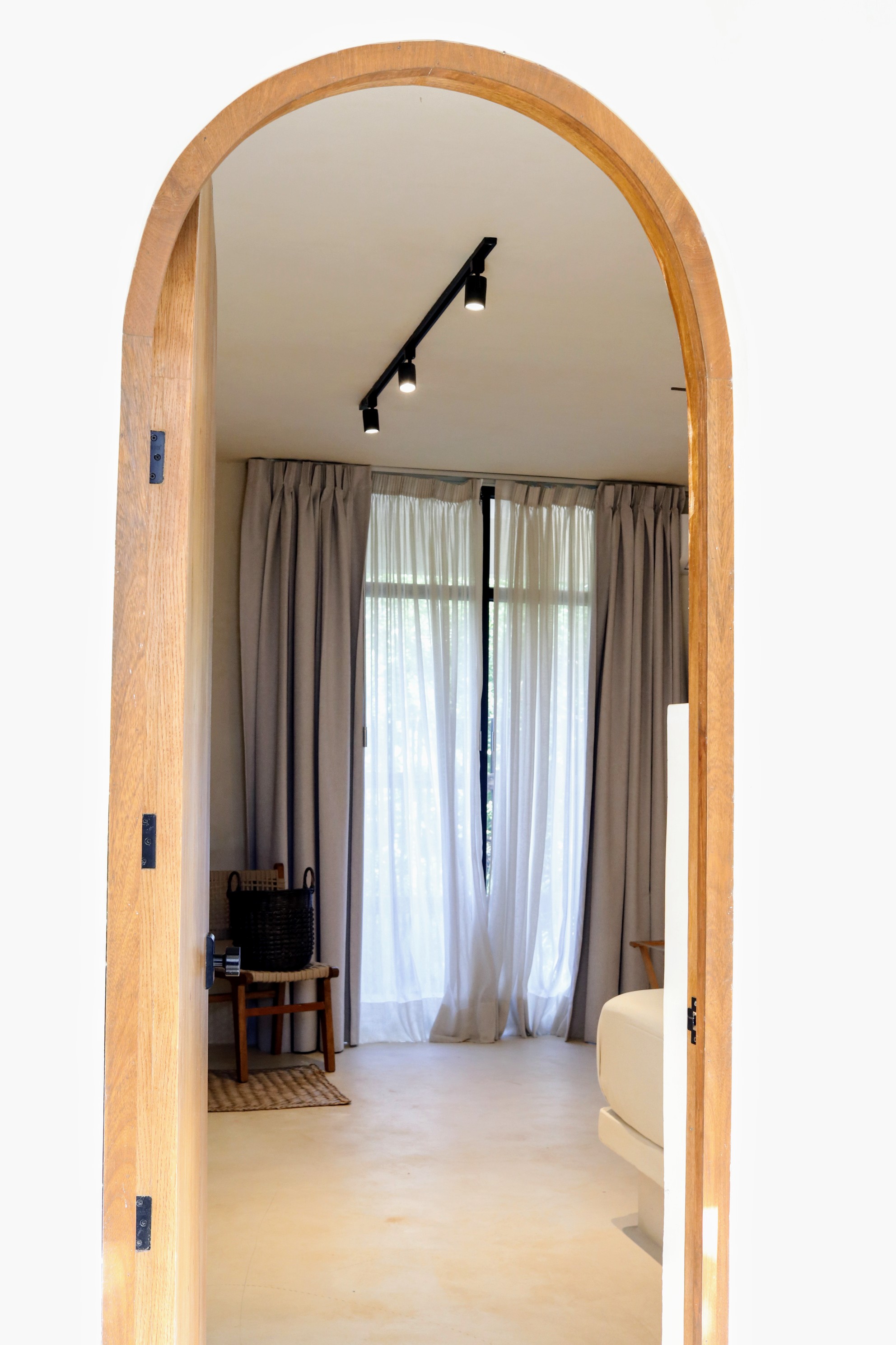 Designed for comfort and calm, this generously sized room features wide glass doors that flood the space with natural light and open up to the surrounding breeze—bringing the outside in, even without a view.