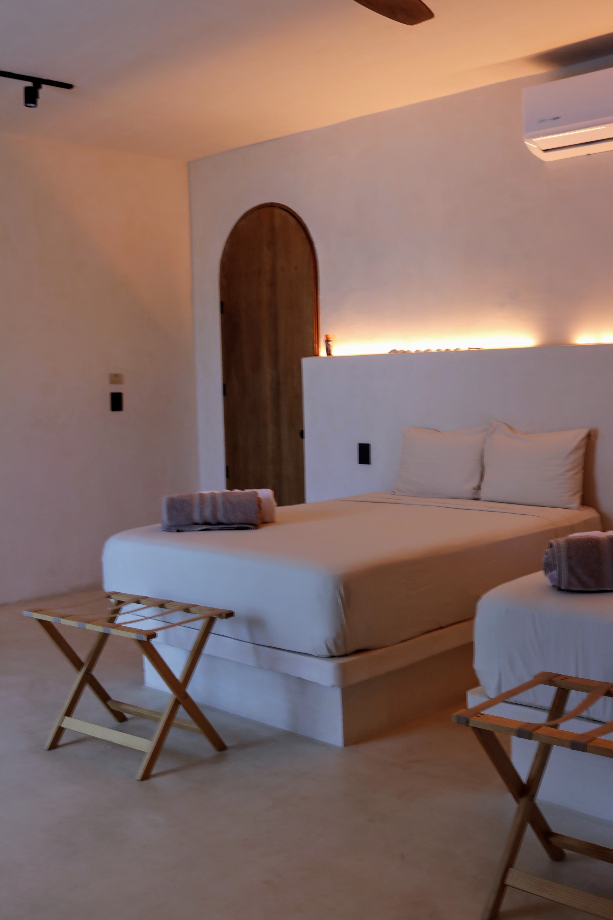 Designed for comfort and calm, this generously sized room features wide glass doors that flood the space with natural light and open up to the surrounding breeze—bringing the outside in, even without a view.